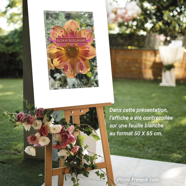 OPTION PERSONNALISATION PRÉNOMS : Pour personnaliser l’affiche, merci de m’adresser par mail (ou via la messagerie au moment de commander) les prénoms. Un bon à tirer vous sera envoyé par mail pour validation. Dans cette option, les médaillons sont fixes et restent identiques à la photo.