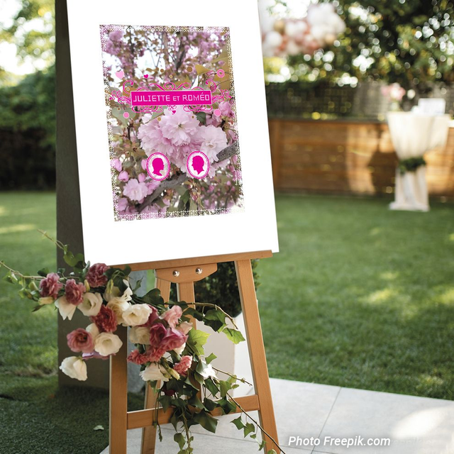 Sur la dernière photo avec le chevalet, l'affiche A3 a été contrecollée sur une feuille blanche au format 50 X 65 cm.