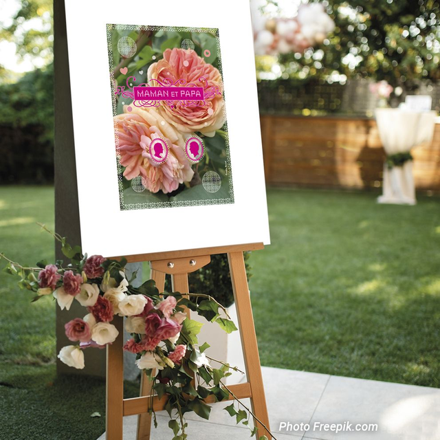 Sur la dernière photo avec le chevalet, l'affiche A3 a été contrecollée sur une feuille blanche au format 50 X 65 cm.